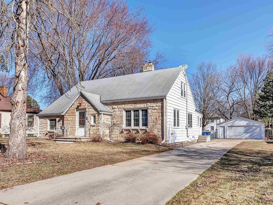 Charming and well-maintained 4 bed Cape Cod with attractive stone front. Large, fenced yard with built-in firepit. Spacious living room with gas fireplace. Tons of character with arched doorways, real hardwood floors, and a large first floor laundry room/mudroom. 2 main floor bedrooms with full bath. 2 huge bedrooms in upper level. Newer furnace, central air, and water heater. 2.5 stall detached garage with new opener. Full basement for plenty of storage or extra living space.