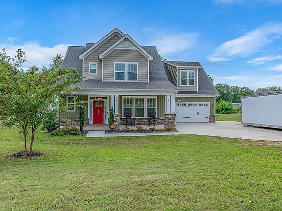 Looking for a newer home with breathing room and no HOA? This may be the one for you. This 2020 Craftsman Style home has 4 bedrooms, 3.5 baths, 2 car garage, fenced yard and large outbuilding. Enjoy the privacy of .68 acres yet convenient to Greenville/Spartanburg- minutes from BMW and I-85. The foyer entrance presents a quality feel that continues throughout the home with crown molding, vaulted/trey ceilings, luxury vinyl tile, 9 ft stone fireplace with raised hearth, surround sound system, upgraded kitchen cabinets with large island, spacious living area with oversized windows and a dining room that is perfect for family dinners or flex space The kitchen has beautiful dark cabinets with slide out trays, gas stove and open floor plan to living area. The master bedroom is a sanctuary with tray ceilings, private view windows, huge walk in closet and deluxe master bath with water closet, garden tub, dual sinks and shower. Upstairs is another massive bedroom that has a full bath with 3 closets - A walk in and 2 more that would be great for a small study area or play room. Additional 2 bedrooms upstairs share a dual access full bath that has 3 separate rooms for shower, sinks and toilet. Entire home has a lot of natural light and storage. A ton of additional storage is available in the 16x10 ft. outbuilding with loft shelving. Part of the acreage has white privacy fencing but there is a lot more room to explore behind this fence. A screened porch, large yard and patio make this a great entertainment home for outdoor activities. Well-maintained home that is only a few years old with over half an acre...don't miss this one!