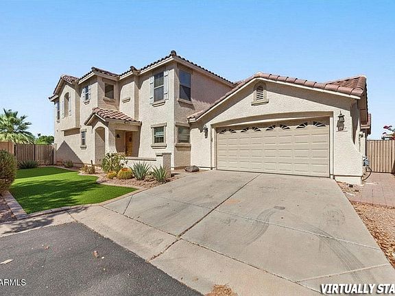 Beat the heat with two brand new AC units and your very own private pool! This upgraded 4BR, 2.5BA home boasts a massive 400+ sq. ft. loft with a walk-in closet—that can be easily converted into a 5th bedroom and office/loft combo. The remodeled kitchen is a chef's dream, showcasing an expanded island, quartz counters, newer cabinetry and fixtures, wine fridge, spacious pantry, and premium Verona gas/electric stove. It flows seamlessly into a bright, open great room perfect for gatherings. The main-level suite offers newer flooring, dual sinks, walk-in closet, and full bath. Upstairs, enjoy three additional bedrooms, most with walk-in closets. Step outside to Arizona living at its finest with a paver patio, and RV gate in the sought-after Spectrum community.