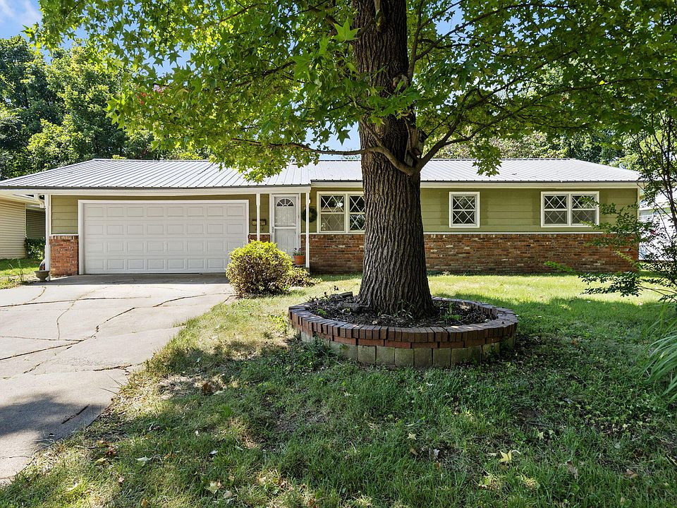 Steeped in Springfield history, this charming mid-century home was the third home built in Meador Park Estates in 1964. Purchased by the seller's parents in 1967, it became the backdrop for a childhood filled with memories. In 1998, the current owners bought it from her parents, raising their own family within these same walls. Now, for the first time in decades, this beloved home is ready for its next chapter.Inside, you'll find original hardwood floors, a spacious living area with a stunning stone wall and wood-burning fireplace, and a flexible layout. The living room opens to a light-filled flex space--perfect for a home office, playroom, or expanded dining area. The kitchen blends original mid-century cabinetry with updated appliances, preserving its charm while offering modern convenience.A glass French door at the back invites you to the patio and a truly one-of-a-kind log cabin shop building. This isn't your typical backyard shed--custom-built at 12x28x14, it features A/C, windows, electricity, a John Deere side door, loft access, and a front porch overlooking the patio. Whether it's a creative workshop, tool storage, or a cozy hangout spot, this detached building has a tiny-home feel and is a rare find.All three bedrooms are generously sized with new windows, and the remodeled bathroom offers double sinks, a built-in storage cubby wall, a new shower/tub, and modern flooring. Meticulous care is evident throughout--metal roof, 90+ HVAC unit, 55-gallon hot water tank, easy oversized crawl space access, and reinforced joists and beams for lasting structural strength.Located just steps from Meador Park Pool and Sports Complex, with nearby walking trails, shopping, dining, and both hospitals on Springfield's Medical Mile, this home offers history, charm, and convenience in one perfect package.