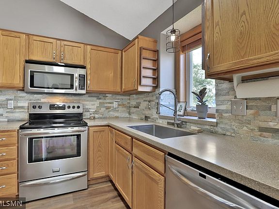 Welcome to this charming home that offers a perfect blend of comfort and adventure! Located just seconds away from the Farmington Prairie Waterway Trail, you can easily jump onto the paved path for a peaceful stroll or bike ride. This lovely residence is also conveniently close to the Dakota County Fairgrounds, providing ample opportunities for recreation and entertainment. inside, the main level features a spacious family room with a walkout that leads to a fenced in backyard and patio which is ideal for entertaining, barbecuing, or simply relaxing outdoors. Additionally, you will enjoy the convenience of a heated two car garage with extra storage available in the attic. The home boasts new carpet, a newer furnace, roof and flooring ensuring peace of mind for years to come. Don't miss the opportunity to make this lovely home your own!