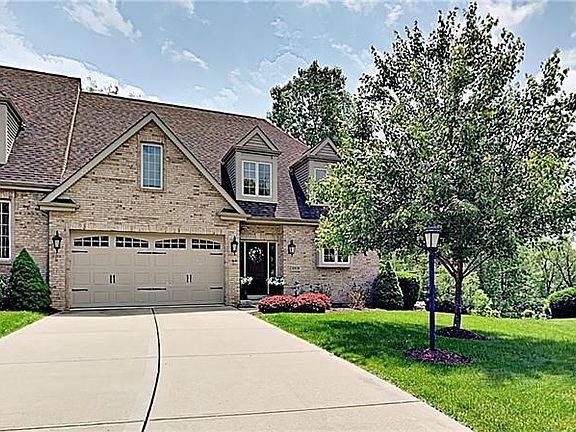 Elegant Franklin Park patio home with tasteful upgrades throughout. Two story entry. Kitchen boasts custom coffee-stained/beige-glazed cabinetry with roping, trim, under-cabinet lighting. leaded-glass corner cabinets, soap stone counter tops and Kenmore Elite appliances. Dining room with access to deck. Vaulted living room with fireplace and wall sconces. Main level master suite with tray ceiling, walk-in closet, and master bath with tile shower and granite counter tops. Main level laundry. Upper level offers two bedrooms (each with dormers and finished dormer storage) and full bath. Walk-out lower level with luxury plank vinyl flooring, full bar, game room, billiard area, den with French doors, full bath, and large storage room. Deck with motorized awning. HOA covers lawn care and snow removal. Upgraded lighting throughout. Exceptional location with easy access to I-79/279. Plentiful shopping, dining, & recreation nearby. Served by the acclaimed North Allegheny School District.