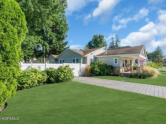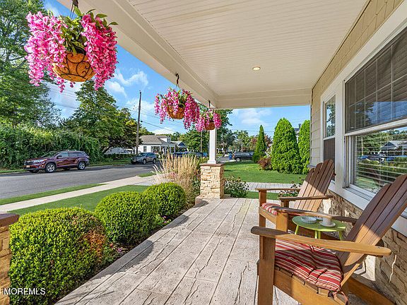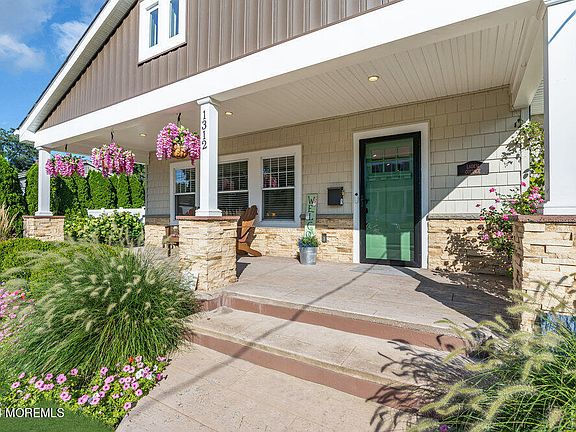 Living is easy in this fully renovated craftsman ranch, minutes from Asbury Park and the beach. Step up to the rocking chair front porch with its stamped concrete floor. The living room will draw you in with its floor to ceiling gas fireplace, cathedral ceilings and lots of natural light. The chef's kitchen is easy on the eyes with white cabinets, quartz countertops, stainless steel appliances and lots of counterspace, plus extras like a pot filler faucet and rollout drawers. Primary bedroom with walk in closet and en suite bath. Exterior features include a large paver patio with remote control awning, storage shed, beautiful landscaping, sprinkler system & paver driveway. Note the lot is oversized for the neighborhood. 1.4 miles to beach & boardwalk & minutes to train, GSP & Rt 18.
