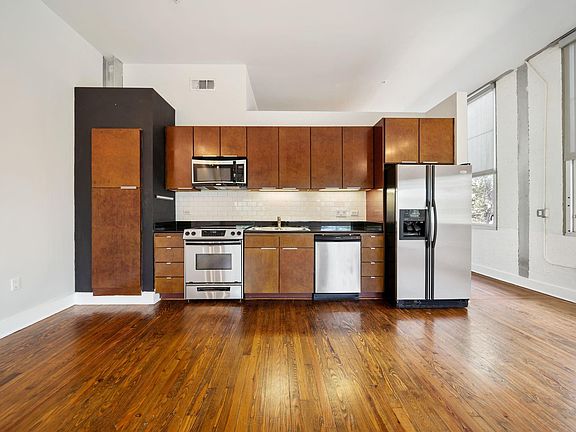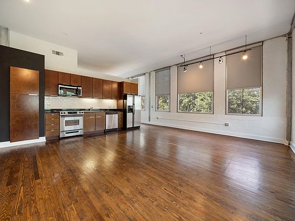 New york loft styleLarge open floor planSoaring ceilingsExposed stone accentsCorner-unit condoOpen airy layout