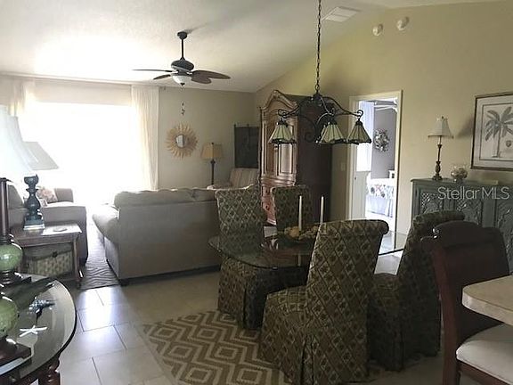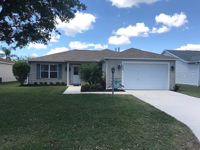 NO CARPET IN THIS LONG TERM FURNISHED RENTAL All tile home for you to enjoy for up to 5 years. Three bedroom home (one bedroom set up as an office with pull out). Completely furnished and ready for you to move in. Flat screen in living. Flat screens in guest room as well. Gas grill along with screened lanai on back of house. Nice open kitchen, dining seats 4. Two seats at the breakfast bar. Pantry in the hallway. Washer and dryer in garage, garage has an extra refrigerator and room for cart and golf cart. No pets no smoking Great community and close to many pools, golf courses, recreation centers and much more. Your Village ID's will cost you $50 for two for the term of the lease. Owner takes care of yard maintenance, pest control and The Villages monthly amenity fee.