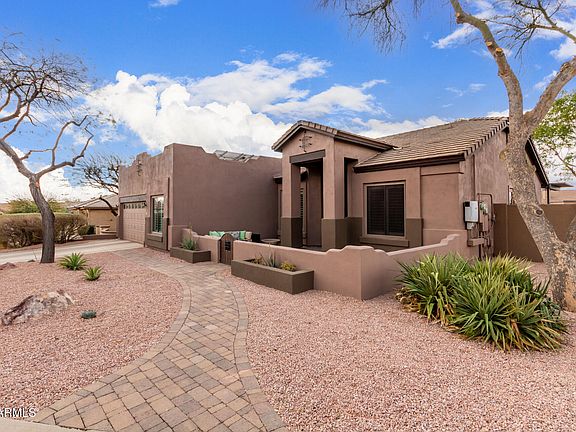 Stunning Single-Level Home in Gated Saguaro Mountain Community. This 4-bedroom, split-floor plan home sits on a premium 12,000 sqft. cul-de-sac lot and is packed with upgrades. OWNED SOLAR, a newer roof, and newer HVAC ensure energy efficiency and peace of mind. A huge front courtyard with a custom gate welcomes you into a spacious living area featuring custom built-ins and picturesque views of the lush, shaded backyard. Step outside to your private oasis, complete with a custom pool, mermaid cove, jumping rock waterfall, extended patios with cantilever shades, and breathtaking mountain views. The updated kitchen boasts modern finishes, while hand-scraped, waterproof luxury vinyl plank flooring flows seamlessly throughout the home. Additional highlights include a tankless water heater... ...and access to the community's private park. Conveniently located 2 miles from Red Mountain High School and Usery Mountain Regional Park for hiking and biking enthusiasts. Refrigerator, washer/dryer, outdoor furniture, and piano are all includedjust move in and enjoy!