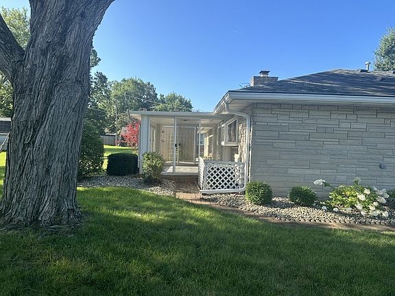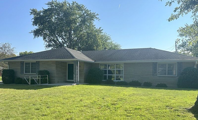 Beautiful stone ranch home in Westbrier Addition. Very well maintained home with three bedrooms and two full baths. Attached two car garage and storage shed. Home is on corner lot with nice landscaping and mature trees. Kitchen appliances are included. You can enjoy the covered front porch, or your attached sunroom in the back. Leaf Guards on gutters.