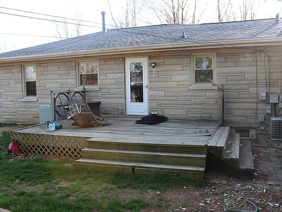 PUBLIC REAL ESTATE AUCTION; TUESDAY APRIL 12th at 5:30 PM; 1312 N RUSTON AVE in EVANSVILLE, IN; LARGE 3 BED, 1.5 BATH BEDFORD STONE HOME; - Fantastic Location! - Over 1,800 SQFT Plus Bonus Rm & Enclosed Porch! - Attached 2 Car Garage, Fenced Back Yard & Deck! - Large Living Rm & Family Rm! - New Roof! - No Buyer's Premium! Situated on a large double lot, this home offers tons of space, some updates, and lots of potential! The main home features over 1,800 square feet of living space all on one level. It includes 3 good sized bedrooms, a large living room, family room, an open kitchen & dining area, along with one full & one half bath. There is one more large room that would be perfect for an office or hobby room. The kitchen and baths have been previously updated. Just in case you need more space, there is an enclosed porch that houses the laundry area and a huge "bonus" or "entertainment" room attached to the 2 car garage! Other features and amenities include hard wood floors, nice rear deck, fenced back yard, oversize concrete drive, replacement windows, yard barn and more. Please make your plans today to investigate this great opportunity and come bid your price!