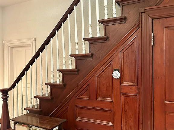 Step back in time to when homes were built to last for generations to come! This 1870 Victorian inspired, Colonial Revival was built by one of Highland's founding families and sits on 1.38 acres adjacent to a park with walking trails. Step inside to discover 11 spacious rooms, 2 open staircases and 2 fireplaces. The well-appointed kitchen features a Jenn-Air gas range with griddle, 2 large ovens, perfect for preparing gourmet meals. Formal dining room is great for entertaining, hearth room off kitchen offers a cozy setting for family meals. With two elegant turret rooms and a wealth of original woodwork this residence is brimming with character. Two open staircases lead to the upper level, the grand one in the front foyer and convenient stairs from the informal eating area. Primary suite offers a walk-in tub for ultimate relaxation and adds a touch of modern indulgence to this home's historic charm. Pocket doors on the main floor can be adjusted for an open living concept or closed off for more privacy. With 5 bedrooms and 3 baths, the whole family will find a space to call their own. New roof was installed in summer of 2025.
