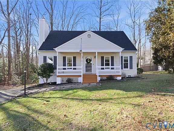 Welcome home to this charming 3-bedroom, 2 full bath Cape-style beauty located in the heart of Midlothian. Offering 1,596 square feet of thoughtfully updated living space, this home shines with fresh paint throughout, a brand New Roof, New HVAC,New Vinyl Windows and stylish New LVP flooring on the main level, complemented by new carpet upstairs. An inviting front porch sets the tone as you enter into the foyer. The living room features French Doors and a New wood burning fireplace perfect for relaxing and entertaining. The main level primary suite offers a walk-in closet and an all New primary en-suite bath. The bright eat-in kitchen boasts all New appliances and a large window with a sling glass on each side. Laundry room is conveniently located off of the kitchen with additional pantry storage. Upstairs, two spacious additional bedrooms are connected with an all New Jack and Jill bathroom. In one of the bedrooms there is additional floored and lighted storage space. The rear deck features new decking boards and top railing that overlooks a very spacious fenced in backyard. With extensive updates and a prime location near everything Midlothian has to offer this home blends classic Cape with modern comfort.