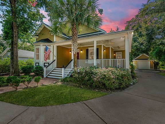 Beautiful, one story, Low Country home in desirable Shell Point. Large, private, fenced yard with garage. Wrap around front porch with ceiling fans and french door leading in to the dining room. Open plan living, dining, kitchen area with stunning wood floors. Updated appliances and new A/C. Soaring 20 ft ceilings, large master suite with french doors leading out to a screened in porch, his and her closets, garden tub and separate shower. Great home in a fantastic location.