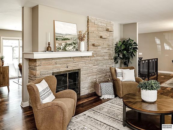 YOUR RANCH HOME IN DISTRICT 66 AWAITS! Sitting on nearly 1/2 acre, this elegant 4-bed, 5-bath home in the heart of Westside School District is totally updated & move-in ready. Step inside & take in the gorgeous wide plank WALNUT floors throughout the main. Enjoy your dining room & spacious living room area with double sided fireplace. Entertain in the chef's kitchen featuring custom cabinets, tile backsplash, granite countertops, & stainless steel appliances, all open to the cozy hearth room & huge enclosed sunroom. Plus, don't miss the mudroom & pantry off the kitchen. Homes features a main floor primary bedroom with full bath & custom walk-in closet. 2nd main floor bedroom also features 3/4 bath & walk-in closet. And, more rec space can be found in the finished lower level w/ 3rd fireplace, 2 additional bedrooms, 2 baths, flex room and tons of storage space. All this nestled on a huge flat lot - PERFECT FOR A POOL & patio space!