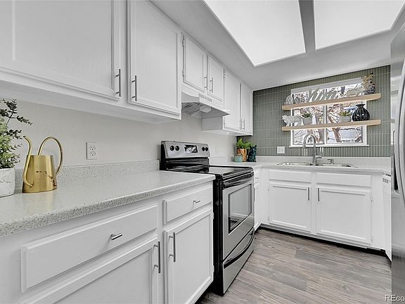 Welcome to your updated and spacious 2-bedroom, 2-bathroom unit, boasting new flooring, paint, and countertops, alongside newer appliances for modern convenience. Revel in the fresh luxury vinyl plank flooring gracing the main living areas, bathrooms, and bedrooms. Relax by the wood-burning fireplace in the sunlit living room or step out onto the private balcony overlooking the serene green courtyard. The primary suite offers its own adjoining private bathroom for added comfort. Nestled in the desirable Louisiana Purchase development, surrounded by ample green space and mature shade trees, this community offers the perfect blend of nature and urban amenities. Explore nearby Sidecreek park and its miles of walking trails or take advantage of the enclosed pool and community amenities year-round. With easy access to major highways, Buckley Space Force Base, Anschutz Medical Center, and DIA, this charming condo serves as an ideal base for exploring the Front Range and beyond. Plus, with recent exterior updates including major siding repairs and fresh paint in coming weeks, the community is set to showcase a fresh new look. An oversized 1-car garage and ample guest parking completes this picture-perfect offering. Don't miss out on this inviting home in a prime location!