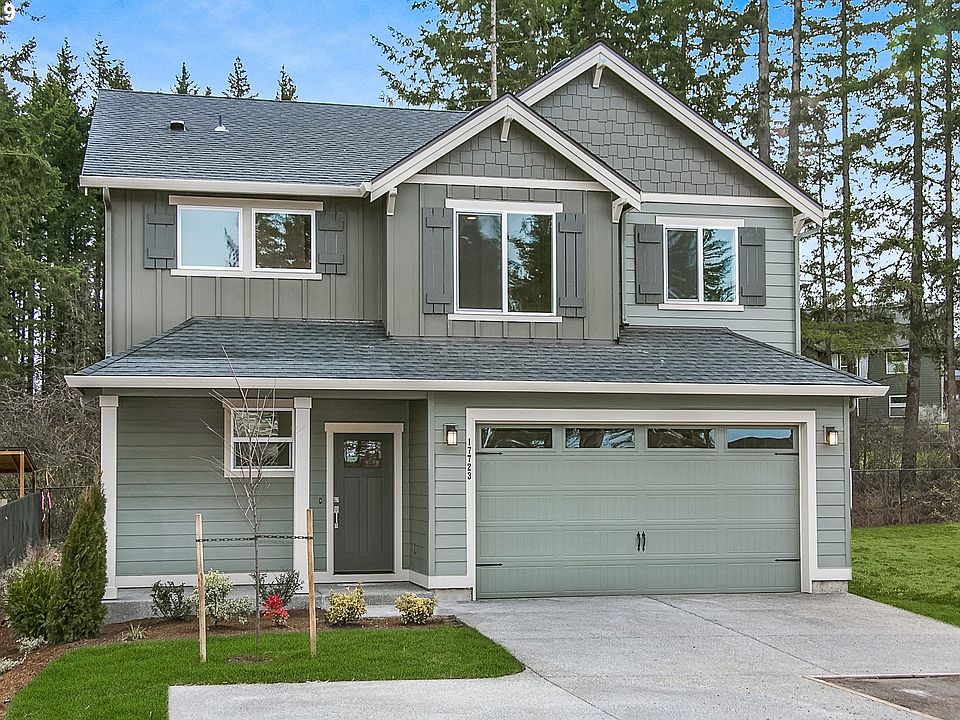 This lovely floor plan has a covered patio, green space lot. Tons of living space on main floor. 4 bedroom, 2 1/2 bath. Backs up to walking trails and surrounded by serene evergreen trees. Slate grey cabinets with grey laminate floors throughout first level. Tons of closet storage space. (photos of same floor plan different finishes)This will be complete 1/14/2021