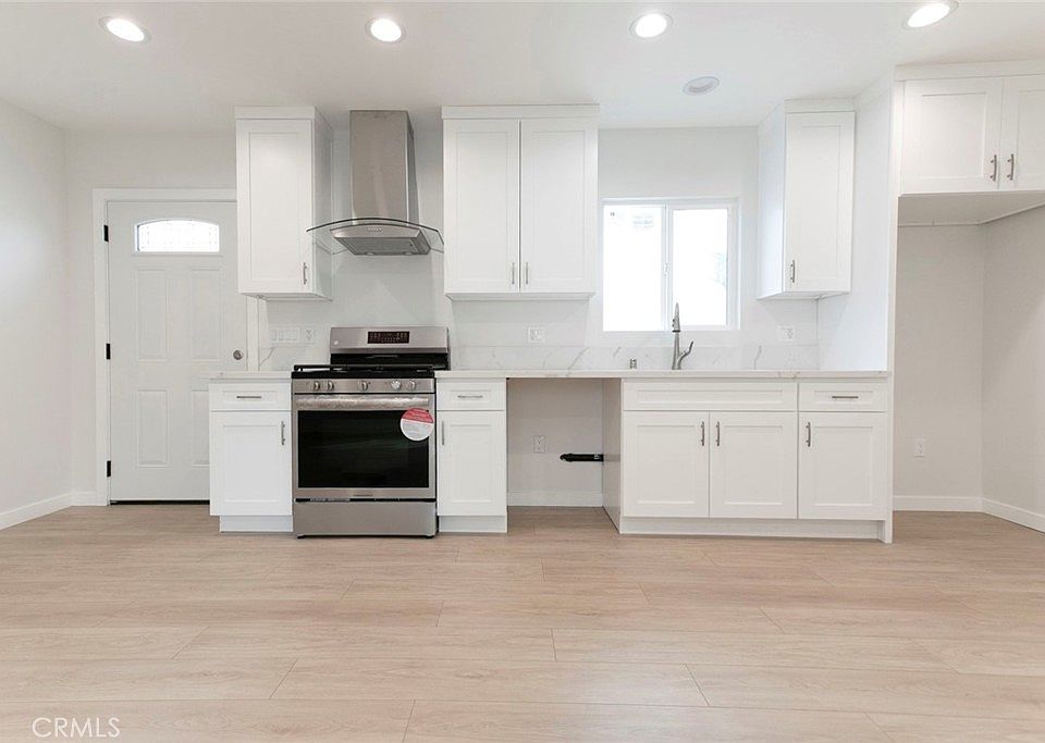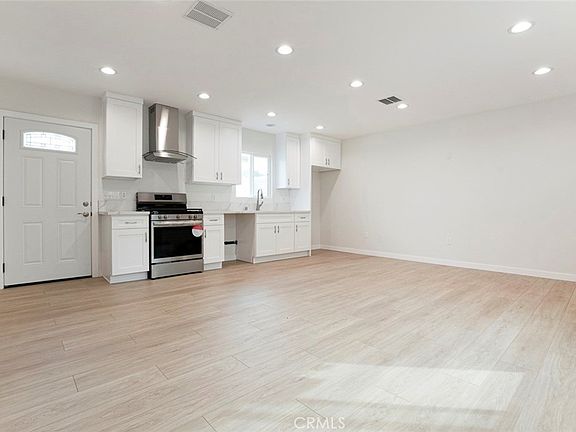 Be the first to enjoy this 1-bedroom, 1-bath back house offers approximately 650 sq. ft. of bright, modern living space with recessed lighting, new flooring, and an open-concept layout. The spacious living area flows into a stunning updated kitchen featuring white shaker cabinets, quartz countertops, and a brand-new stainless steel stove with a sleek hood. The bedroom includes large mirrored closet doors, while the luxurious bathroom showcases floor-to-ceiling marble-style tile, a glass-enclosed shower with a rainfall showerhead, built-in bench, and an LED-lit vanity mirror. The unit is located behind a secure gated entrance for added privacy, and includes one designated parking space. This move-in-ready home offers a private, clean, and stylish living environment perfect for anyone seeking comfort and convenience. Water included!!