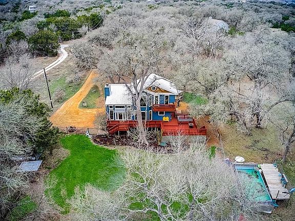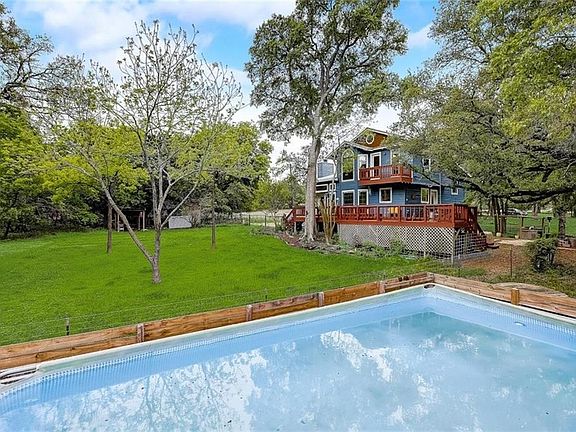 Enchanting, secluded 3 bed 2 bath 1866 sqft tree house perfectly nestled on 3.36 acres spring fed creek front property. Affectionately dubbed âRed Dog Ranchâ for the owners extensive work with animal rescue. Heavily wooded with interior acre fenced for pets or livestock, greater perimeter 80% fenced with electric gate. Enormous wrap around deck with expansive views of the creek, pool and common yard spaces. Covered grill/smoker area, lean too shed for yard tools and a fenced garden area ready for weekend gardening/farming.Featuring a natural spring that bubbles up next to the house and feeds down to the creek that runs 7-10 months out of the year. Zoned to the highly desirable Dripping Springs school district, minutes from Belterra Center with access to dining and shopping, and just less than 15 minutes from historic downtown Dripping Springs as well as a myriad of breweries, wineries and distilleries only minutes away. New paint inside and out, natural wood accents and a serving window in the kitchen that could easily be expanded to open up to the great room. Luxury vinyl plank flooring downstairs, and an enclosed car port with custom barn doors that could be used for an office, workshop or additional storage.