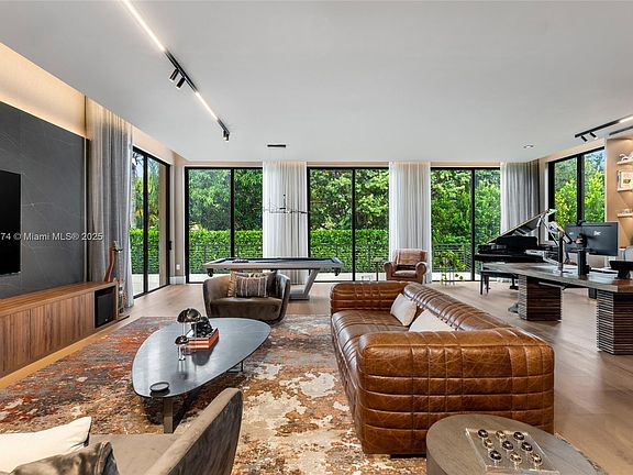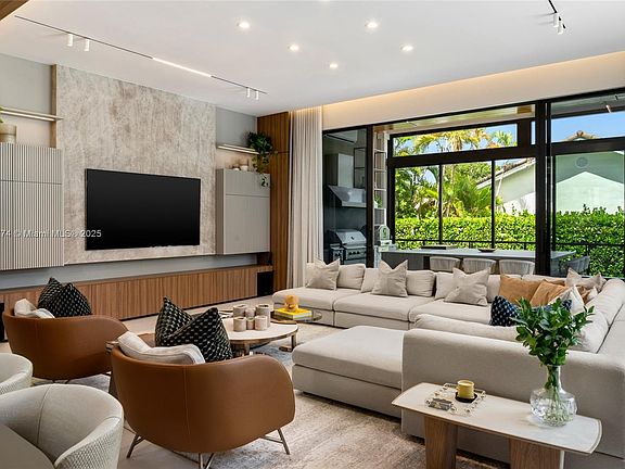 A timeless blend of elegance and comfort, this exceptional two-story residence offers 7 bedrooms, 7 full baths, and 1 half bath, thoughtfully curated for refined living. Soaring volume ceilings, impact glass, and bespoke built-ins elevate each space with understated sophistication. The gourmet kitchen showcases custom cabinetry, Wolf appliances, Sub-Zero refrigeration, and a Sub-Zero wine cooler, seamlessly flowing into the wet bar and living areas. A glass-enclosed porch with a summer kitchen featuring a pizza oven invites effortless indoor-outdoor entertaining. Additional highlights include a club room, media room, and the potential for a backyard pickleball court with available renderings.