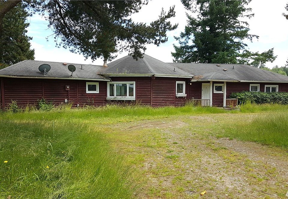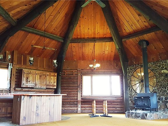 Diamond in the rough! This once grand log home on 40 acres is a rare find indeed. Homes full back porch overlooks its own valley of hay fields- private & extremely peaceful setting. Property offers 4 other structures: a garage that was converted to a home (has since been let go & has black mold from possible pipe leak), a 'church' (with half bath in relatively good condition), a barn (roof in bad shape) and a newer two stall run-in shed. As is sale! Cash only!