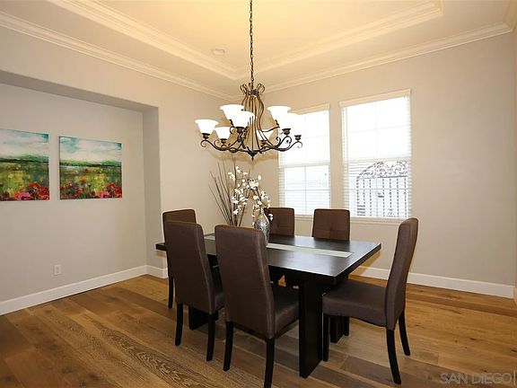 4543 sqf home has 5 BR (one down-stairs), an office & 4.5 baths, master suite has a spacious retreat and a fire place. The dramatic kitchen and formal wet bar open to large family RM; elegant living room and a separate formal dining; 20 ft vault ceiling at entrance and 10 ft high first floor; east south facing and lots of windows; well maintained tropical front and back yard. Safe end street location. located in the heart of Carmel valley, walking distance to schools (CCA). This 4543 sqf home has 5 bedrooms (one in down-stairs), an office and 4.5 bathrooms, master suite has a spacious retreat room with a fire place. The dramatic kitchen and formal wet bar open to spacious family room; an elegant living room and a separate formal dining room; 20 feet vault ceiling at entrance and 10 feet high for the first floor; east and south facing and a lots of windows creating a light and bright feeling; well maintained tropical front and back yard. Safe end of street location, friendly neighborhood. located in the heart of Carmel Valley, walking distance to the best elementary, middle and high (CCA) schools. All data are from public record. Buyers/Buyers' agents verify and approve all data prior to close of escrow. The house was built in 2002 with upgrade design and modern grey interior color, . Gigantic oval center kitchen island and the separate elegant formal bar give this house a unique and gorgeous looking. Three 3 modern fire places located in family, living room/office and master suite. Spacious master suite featured with a retreat room separated from the big bedroom by a fire place, huge closet with separate entrance for her and for him, spacious bathroom with mirrored Vanity and a large center cabinet. A quiet reading area by the entrance of the master suite. Tankless water heater, whole house water softening and filtering system, separate conditioners for upstairs and downstairs. Large built-in entertainment center holds 70 inches TV with additional shelves for display. A practical design allows a number of hidden storage/pantry. . Well designed and maintained backyard without immediate neighbor in the back but a sunrise view over far-away roofs. Newly painted and well maintained house with stucco wall fence and gated front yard providing additional privacy and security.