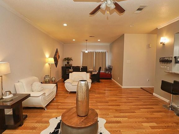 This spacious 4-bedroom, 2-bath home offers 1,900 sq. ft. of living space with a private garage and driveway parking. Features include wood and tile flooring throughout, tiled showers, ceiling fans in every room, and large bedrooms with plenty of closet space. The kitchen is complete with an electric stove and refrigerator, plus a washer and dryer in a private laundry roomall included with the lease. Enjoy your own patio for outdoor gazing. The property is currently furnished (available for an additional fee), but it will be leased unfurnished at the listed price. Located in the thriving East Aldine community, you'll be near the East Aldine Arts District, George Bush Intercontinental Airport, and the Houston Interactive Aquarium and Animal Preserve. A vibrant, family-oriented neighborhood with plenty to offer!