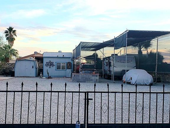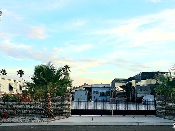 Ready to make YUMA YOUR PLACE TO CALL HOME. This featured listing is fully gated, double gates, 2 R.V. hookups, 2 separate concrete pads, oversized R.V. shade, storage shop, R.V. support building convenient and complete with amenities, including 24ft. Springdale trailer, graveled, mature and colorful landscaping and palm trees to give you your own privacy. All ready and waiting to welcome your R.V. lifestyle that is sure to be perfect for settling in. Now is the time to say yes and refine this gem into a Ruby of your Own!