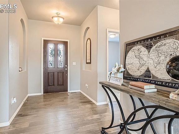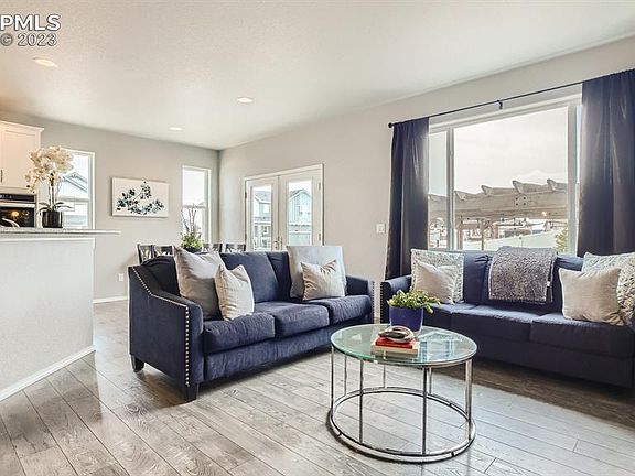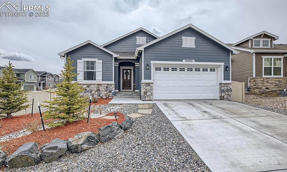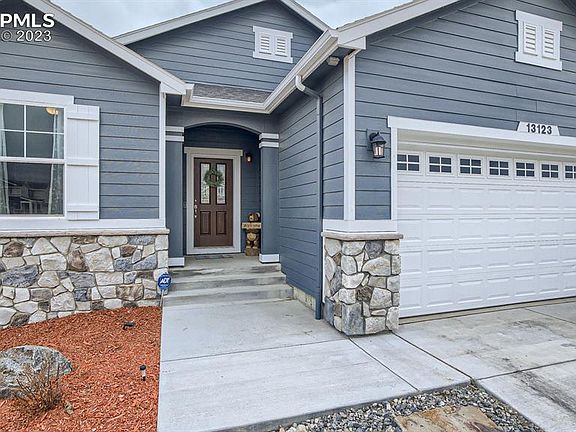 Immaculate ranch situated on large corner lot in the highly desired Stonebridge community, featuring a community park, pool, great walking paths and nearby shopping centers! Skip the new build line and have everything that the highly sought after Meridian Ranch has to offer! With soaring ceilings and an open style floorplan, this is main level living at its finest! Master bedroom on the main level and 3 bedrooms in the fully finished basement. The spacious master retreat features valued ceilings, and an attached 4-piece bathroom with a large walk in shower with tile surround and a walk in closet. The kitchen will be perfect for entertaining with a large island, stone countertops, canned lighting, gourmet gas range, a pantry and a walk-out to the expansive back patio. Rounding out the main floor, you will find a laundry room, 3/4 bath and large living room. As you descend to the basement you will find large family room, which has been pre-plumbed for a wet bar, full bath & two additional bedrooms. This home has been meticulously cared for and boasts pride of ownership. The property features pristine landscaping, a well-maintained exterior, that has had over $30k worth of landscaping done, with full irrigation system and drip lines to all trees! The trim permanent lighting system along the exterior adds an element of festivity and ambiance to the outdoor space that can be enjoyed year-round. Community center offers a huge pool, complete with lazy river. Minutes to the great restaurants, shopping, entertainment, hiking trails and hospitals along the Woodmen and Powers corridors. Easy commute to military bases.