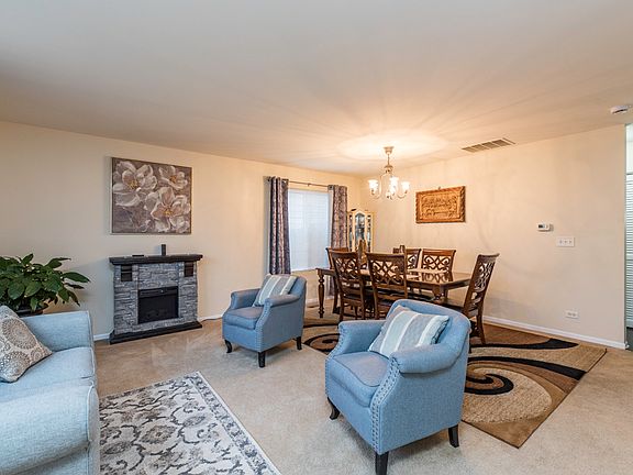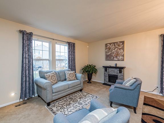 Welcome to this Two Story Colonial backing to open farmland in Cambridge of Heatherstone! This home offers a spacious formal living room and dining room combo. 42" white cabinets, nice back splash tile, eating are with sliding doors to back yard. The adjacent family room is conveniently combined with the kitchen. The master suite serves as a private retreat. It offers ample room and includes large walk-in closets. double vanity, tub and separate shower. The additional bedrooms are generous size and offer walk in closets. New roof and furnace 2023. Newer refrigerator and dishwasher. Fenced yard. Attached two car garage. Schedule your showings today!