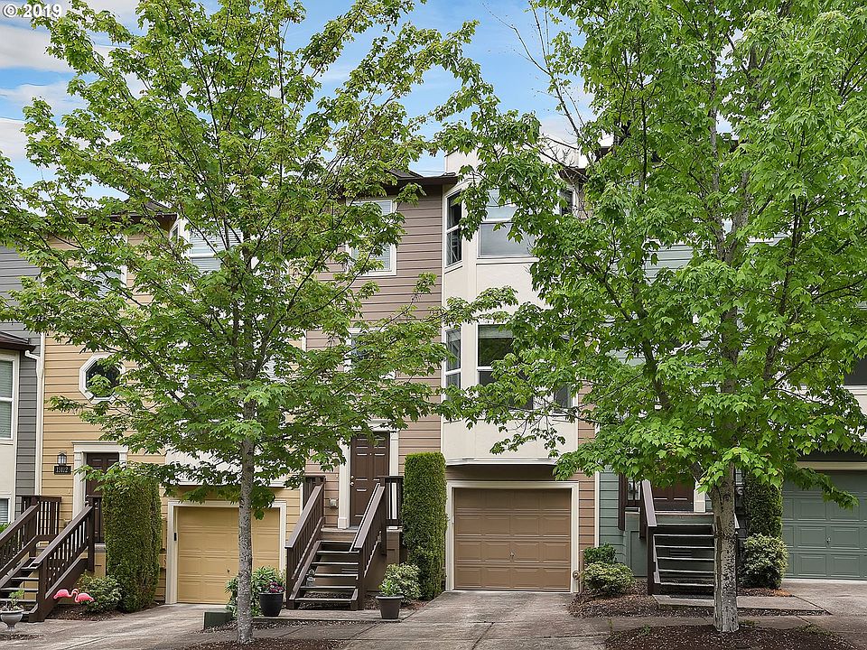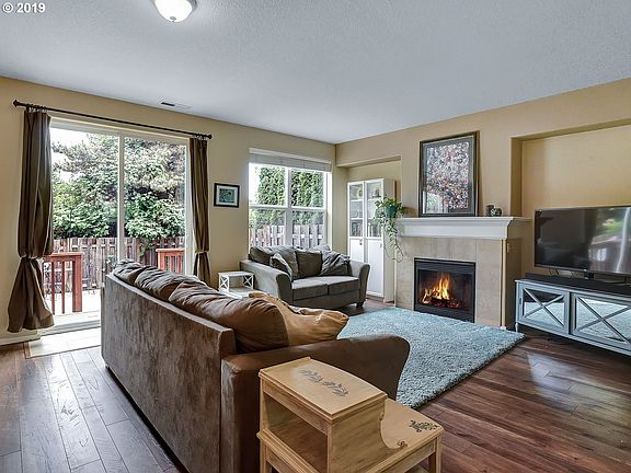 Bright & beautifully updated Brownstone backs to a quiet field & just minutes to Progress Ridge! Hardwood floors in spacious living, open kitchen, dining w/bay window. Both bedrooms have large walk-in closets (IKEA closet system installed in 2019 in master). Master includes large soak tub. Gas fireplace, large pantry, 2-car tandem garage w/workshop area. Fully fenced backyard w/patio & deck. High & vaulted ceilings, stainless appliances. New and very QUIET heat pump with wall heating/cooling units on 2nd and 3rd floors, new water heater, new fence, new ceiling fans in 2019. New refrigerator in 2020. Peaceful & private w/VERY LOW HOA FEES!
