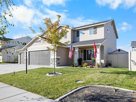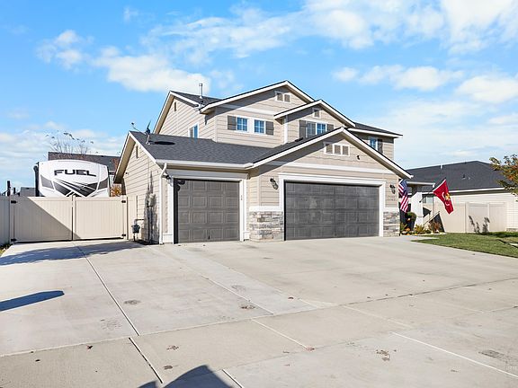 Better than new in the heart of South Nampa! This beautifully upgraded 4 bed, 2.5 bath CBH home offers 2,065 sq ft of stylish, move-in ready living. Enjoy a massive 30x12' stamped & fully covered patio, matching 7.5x20’ shed, smokeless fire pit, and mature trees for backyard privacy. True RV parking behind a wide side gate with curbing, gravel, and extended 3-car driveway! Inside you’ll find upgraded laminate flooring throughout main level, custom accent walls, new light fixtures, hardware, and faucets. Kitchen features black stainless Samsung appliances and a large island for entertaining. All windows have privacy tinting and garage has just been refinished. Front and backyard landscaping with curbing, garden beds, and shade trees complete the picture. This home has it all—space, upgrades, and location!