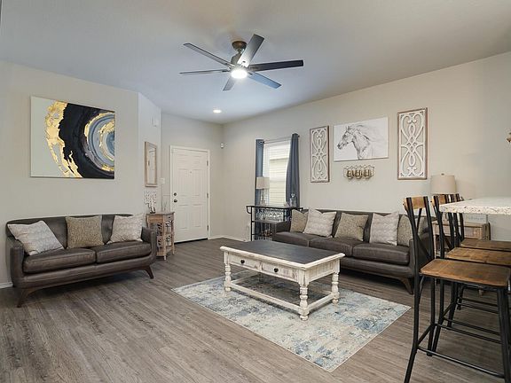 Beautiful 3 Bedroom, 2 Bathroom home in Heather's Place subdivision. This home is in fabulous condition! The open floor plan makes for a spacious and inviting environment. Vinyl plank floors in all common areas create a contemporary style coupled with easy maintenance. All bedrooms have soft carpet and are equipped with ceiling fans. Primary bedroom has a spacious walk-in closet along with an en suite bathroom that features a shower-tub combo and double vanity. Modern kitchen design featuring beautiful granite countertops and a charming breakfast bar. Gorgeous stainless steel appliances are present throughout. Spacious 2 car garage makes for easy parking and safe storage. The grassy backyard has an expansive, covered patio with a privacy fence that is great for pets! Located only 5 minutes from I-10 making for a quick commute to major surrounding cities, yet tucked away in a quiet, peaceful neighborhood in the highly sought-after Schertz/Cibolo School district!