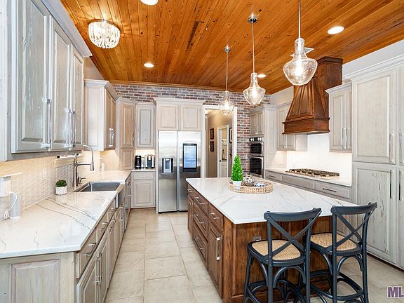 Meticulously maintained home in Geismar! 50 ft RV parking with a 30-amp RV outlet and an oversized 4-bay garage. Conveniently located just 1 mile away from Dutchtown schools with easy access to I-10. This home sits on over half an acre of land and features a custom-built pool by Ewing Pools with peaceful waterfall sounds, perfect for relaxing or entertaining in the upcoming summer months! 10'-12' ceilings and elegant 8' entry doors. The living room, formal dining area, and bedrooms feature wood flooring. The kitchen is a chef's dream, equipped with newer stainless appliances, a gas cooktop, a center island, high end quartzite countertops, and cypress cabinets. The living room is perfect for entertaining, with its open layout connecting seamlessly to the dining and breakfast areas. The living room offers a gas log fireplace with brick accents. Adjacent to the living room is an office space with built-in bookshelves and a desk. The primary suite offers a serene retreat, featuring a jetted tub, a separate stand-up shower, his and her vanities, and an oversized walk-in closet with custom shelving and a chest of drawers. This home also includes a bonus room with a bath and closet area. As you step outside you will discover the outdoor oasis awaiting you. Recent updates to the property include a new roof in 2022, fresh paint throughout the interior and exterior, a new wood fence also in 2022. Exquisite property offering a blend of elegance, comfort, and functionality, making it the perfect place to call home!
