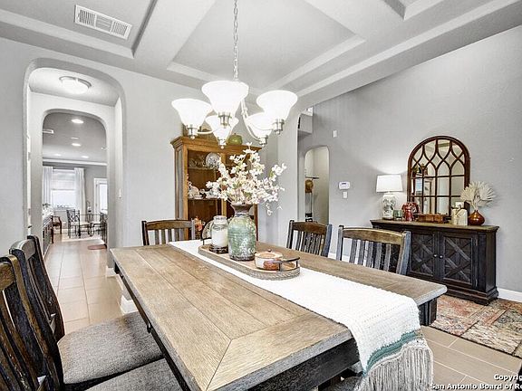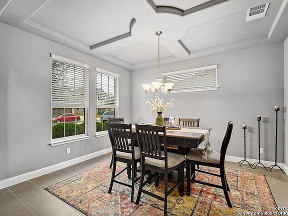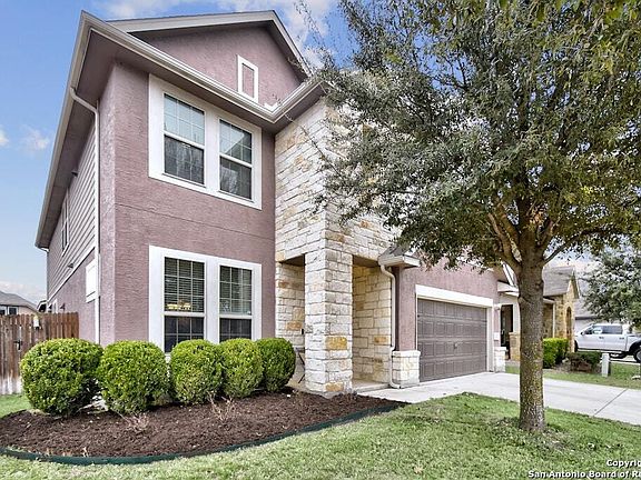 Nestled within the highly sought-after Talise De Culebra community, this remarkable 4-bedroom, 2.5-bathroom residence embodies refined elegance and sophistication. Impeccably maintained, every element of this home reflects unparalleled pride of ownership. The expansive open floor plan is illuminated by an abundance of natural light, accentuated by soaring tray ceilings and grand windows, while graceful arched walkways enhance the home's architectural allure. A true culinary haven, the gourmet kitchen boasts a generous island, luxurious granite countertops, a breakfast bar, and top-tier stainless-steel appliances, making it the perfect setting for both everyday meals and grand gatherings. The oversized master suite is a sanctuary of relaxation, offering bay windows, dual walk-in closets and a spa-inspired bath complete with a separate garden tub and an indulgent walk-in shower. Three additional spacious upstairs bedrooms provide ample privacy and comfort, while the expansive media and game room offers the ideal setting for movie nights or leisurely entertainment. The breathtaking backyard oasis, complete with an extended patio cover, deck, strategically placed lighting, a cozy fire pit, garden boxes, and flourishing fruit trees, provides the perfect backdrop for entertaining family and friends. Conveniently located within NISD, and just moments from military installations, schools, shopping, and dining, this home offers both convenience and luxury. Residents enjoy an array of exceptional amenities, including a pool with children's play area, serene fishing pond, basketball court, BBQ area, and a peaceful wooded walking trail. This is a great opportunity to own your dream home. Schedule your private showing today!