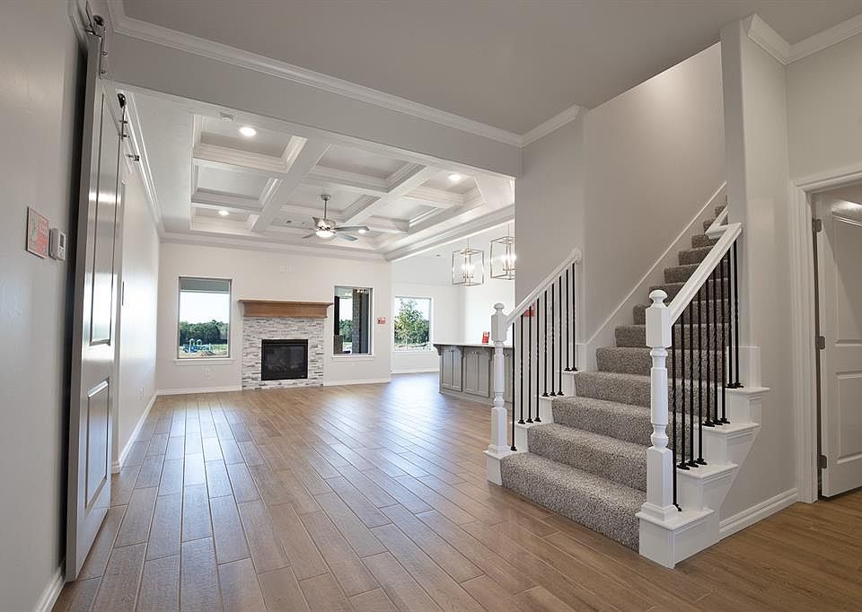 This Sage Bonus Room 2 floor plan features 2,550 Sqft of total living space, which includes 2,300 Sqft of indoor space & 250 Sqft of outdoor living. There's also a 625 Sqft, three car garage with a storm shelter installed. This amazing home offers 4 bedrooms, 3 full baths, covered patios, a utility room, & a generous bonus room located on the second story! The great room features a noteworthy coffered ceiling, a center gas fireplace with our stacked stone surround detail, large windows, crown molding, a ceiling fan, & wood-look tile. The up-scale kitchen has decorative tile backsplash, stainless steel appliances, well-crafted cabinets to the ceiling, stunning pendant lighting, 3 CM countertops, a corner pantry, & a large center island. The primary suite boasts a sloped ceiling detail with a ceiling fan, windows, & our cozy carpet finish. The prime bath has a walk-in shower, a dual sink vanity, a Jetta Whirlpool tub, a private water closet, & a HUGE walk-in closet. The covered back patio offers a wood-burning fireplace, a gas line, & a TV hookup. This Taber home also features healthy home technology, a whole home air filtration system, a tankless water heater & MORE.