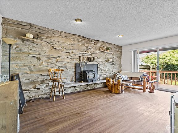Turn-key, single level home in desirable Cosmopolis. Impressive natural stone skirts the exterior of the home and elegantly surrounds the wood burning fireplace in the living room. Two primary bedrooms with en suite bathrooms and walk-in closets. Huge windows throughout the home allow for tons of natural light. The layout of the home allows for one of the primary bedrooms to be a separate studio completely with its own parking, entry, kitchenette and brand-new bathroom with jacuzzi tub. Many recent updates including exterior paint, stone treatment, and all 3 bathrooms have been newly tiled. Manicured lawns with mature trees are easy to care for and local schools & parks are within walking distance. Come see this one in person!