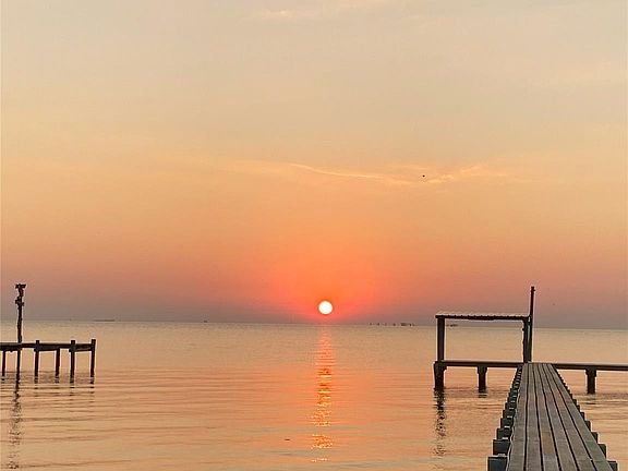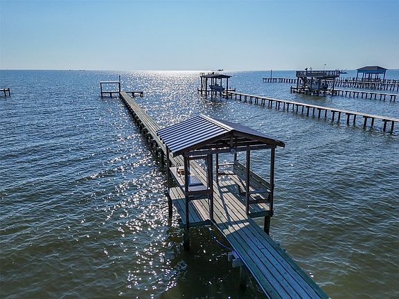 This beautiful waterfront beach house is a gem, blending modern upgrades with the serenity of coastal living. Nestled along the shoreline, it boasts a 300-foot private pier, with water, electric, and cleaning station. Concrete bulkhead. The home is updated with sleek stainless-steel appliances in the gourmet kitchen. Motorized storm shutters offer effortless protection, while updated PEX plumbing ensures low-maintenance reliability. An EasyLift provides seamless access to the main floor, enhancing convenience. Bright, airy rooms showcase stunning bay views, and open living spaces flow onto an expansive deck, perfect for morning coffee or evening cocktails. The waterfront location invites endless activities—fishing, kayaking, or paddleboarding—right from your backyard. Enjoy nearby restaurants. Less than a half mile away is Topwater Grill and Pier 6 is less than 2 miles away. Perfect as a primary residence, vacation retreat, or investment, this home delivers adventure and serenity.