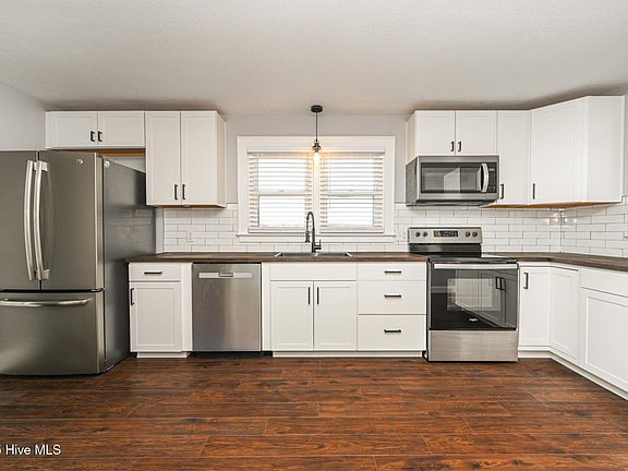 Welcome to this beautifully updated 3bedroom, 1-bathroom home that perfectly blends country charm with modern. Step inside to a spacious living room, perfect for entertaining or relaxing. The stylish kitchen features stainless steel appliances, a butcher block countertop, a classic farmhouse sink, and a subway tile backsplash, creating the perfect space for cooking and gathering.