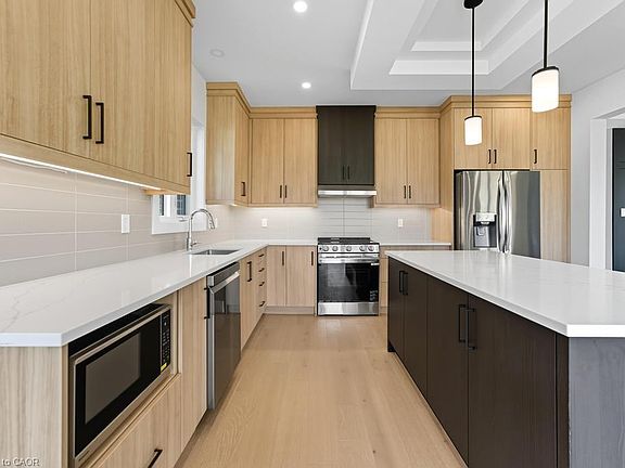 This stunning brand-new, 2,694 sq. ft. home offers the perfect combination of modern design, spacious living, and an unbeatable location. Situated on a generous lot within walking distance to Lake Ontario and nearby parks, this home provides a serene setting while offering convenient access to highways for easy commuting. With 4 bedrooms and 2.5 bathrooms, this thoughtfully designed layout is perfect for families, entertaining, and everyday comfort. Inside, the open-concept floor plan features a gourmet kitchen with premium appliances, a large island, and quartz countertops that flow seamlessly into the bright and inviting living space. The luxurious primary suite boasts a spa-like ensuite with a soaker tub and glass shower, while the additional bedrooms offer ample space and natural light. Large windows throughout the home create an airy atmosphere, enhancing the modern aesthetic. This property also comes equipped with a range of upgraded features for your comfort and peace of mind, including a built-in security system with 4 exterior cameras, upgraded Wi-Fi pods installed throughout the entire home for optimal connectivity, and energy-efficient finishes. A spacious double-car garage, upgraded flooring, and designer fixtures throughout add even more value to this move-in-ready home. From its prime location to its luxury upgrades and customizable finishes, this home is a rare opportunity to create a space that truly feels like your own. Don’t miss your chance to own a beautiful new construction home in a sought-after neighbourhood—contact us today for more details!
