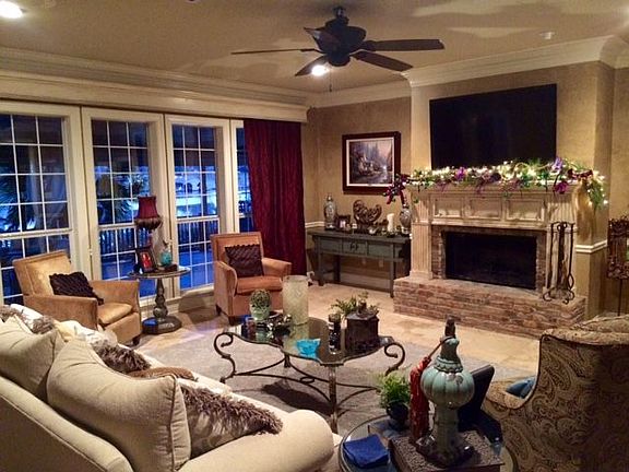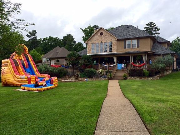 There are two outdoor living areas that overlook Black Bayou. There is a 1500 sq ft covered back patio that is made of composite wood that will never rot! It features surround sound with TV, Ceiling fans, Natural Gas Line for your Gas Grill and tons of entertainment space.