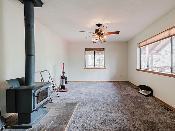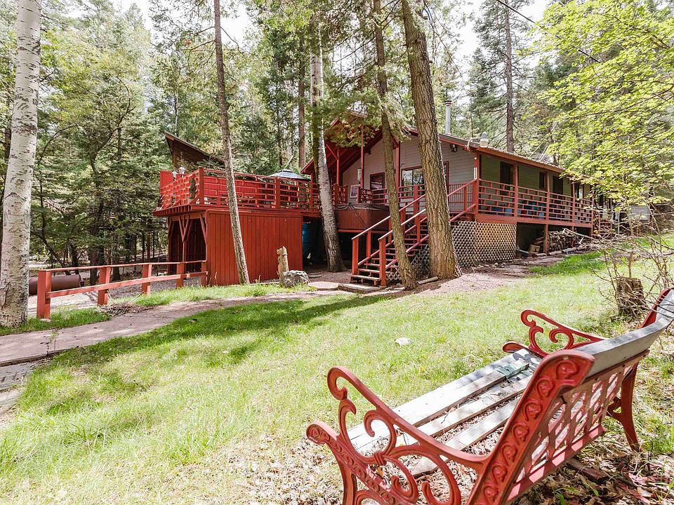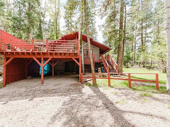 Charming mountain cabin that’s ideal as a vacation getaway, second home, or full-time residence. The inviting living room with a cozy wood stove flows easily into the dining area and kitchen, creating a warm and functional layout. Two spacious bedrooms share a bathroom featuring a large walk-in shower. Enjoy the abundance of outdoor living space, including both covered and open decks—perfect for entertaining, relaxing, or unwinding in the hot tub while soaking up the fresh mountain air. A two-vehicle carport provides convenient parking, with additional storage space and access to an approximately 200 sq. ft. heated workshop/storage room complete with electricity. Call today to see this quintessential mountian home today!