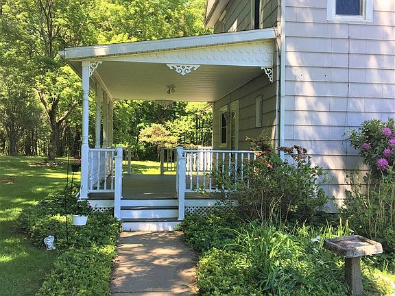 If picturesque views, privacy & seclusion is what you want, THIS IS IT! Pride of ownership shows in this meticulously maintained farmhouse in Cranberry Schools. This home boasts old world charm w/ modern mechanics. The kitchen is furnished w/ new stainless steel appliances and a moveable large island for more storage and counter space. Dining room will seat large family gatherings, living room has a nice garden window, 2 gas fireplaces, 5 bedrooms, 2 full baths and 1st floor laundry. Home is heated with a hot water boiler, full dry clean basement, water softener is owned, updated 100 amp electric & high speed internet. Enjoy nature & wildlife from any of the 3 porches that have low maintenance decking and white vinyl railings on different sides of the home. PLUS 25 acres to roam and play or hunt from the large tree stand built and already up, a 2 car detached garage, an oversized old barn that needs work for farm animals. This home is beautifully landscaped. Bonus - Marketable timber!
