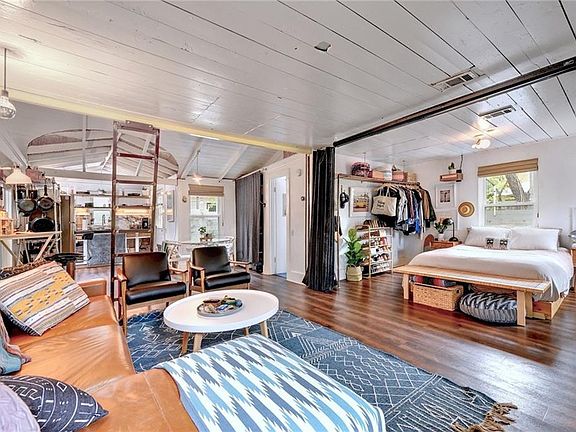 Loft sq ft not included in total sq ft. Quaint Eastside bungalow with great natural light tucked back on part of Austin's Healthy Street program promoting low-traffic areas for walking, wheelchair rolling, running and bicycling with enough space to maintain physical distance. Home is remodeled with open floor plan and a loft. Ample yard in front with downtown cityscape views, private back and sideyard enclosed with electric-gated security fence. 1.8 mi walk to Town Lake, 1.2 mi walk to Whole Foods. Stand alone house with xeriscaped yard (little to no maintenance), close to Dell Medical Center, UT, and the Texas State Capitol.