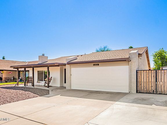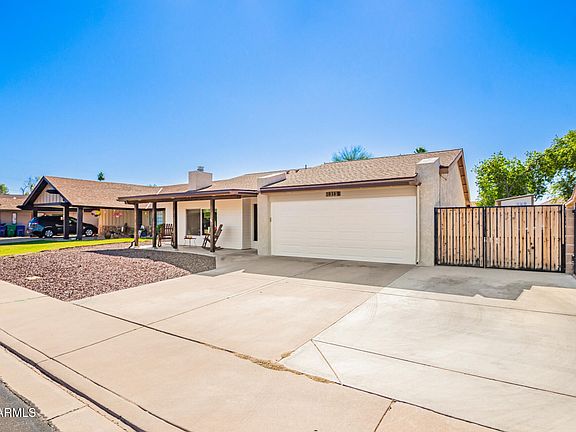 Stunning renovated home with modern upgrades, a resort-style yard, and no HOA! Inside, enjoy a bright open layout with raised soffits, upgraded flooring, vinyl dual-pane low E windows, custom trim, and a cozy wood burning fireplace. The kitchen was fully remodeled in 2019 with granite countertops, upgraded cabinetry, stainless steel appliances, and a farmhouse sink. The primary suite features a spa style walk-in shower, and the guest bath was updated in 2022. Outside, the backyard is designed for Arizona living with a 2020 pool, extended travertine deck, turf, wood privacy fencing, and a large covered patio. A detached flex space with a mini split offers the perfect home office, gym, or studio. Recent major improvements include a brand new HVAC and water heater (2025), updated windows and doors (2020), new flooring (2018), updated ducts (2017), remodeled bathrooms (2021 and 2022), along with a Tuff shed and water softener (2022). Additional highlights include an RV gate, two car garage, indoor laundry, and a spacious backyard. Perfectly situated near parks, schools, dining, and freeway access, this beautifully cared for home is an incredible find and a must see.