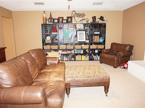 Nice 3-2-2 brick home in a quiet neighborhood; Open concept den, dining area & kitchen; The den features a WBFP & a wall shelving unit; The dining area is located between the den & kitchen & offers a bay window; The galley kitchen has Formica counter tops, ceramic tile back splash, refrigerator, smooth surface free-standing stove, built-in microwave with a lighted vent-a-hood, dishwasher, disposal & double sink; Full-size utility closet adjoins the kitchen & has built-in shelves & cabinets; A hall bathroom offers a tub-shower combination, vanity & toilet; 2 linen closets are located in the hallway; The master bedroom boast 2 closets a vanity & adjoining bath with a tub-shower combination & toilet; Covered patio
