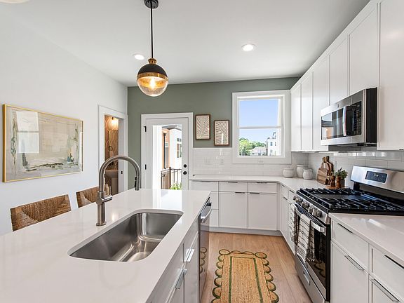 Sleek quartz countertopsPaver road systemWide-plank flooringRooftop deckGenerous islandLarge windowsOpen layout