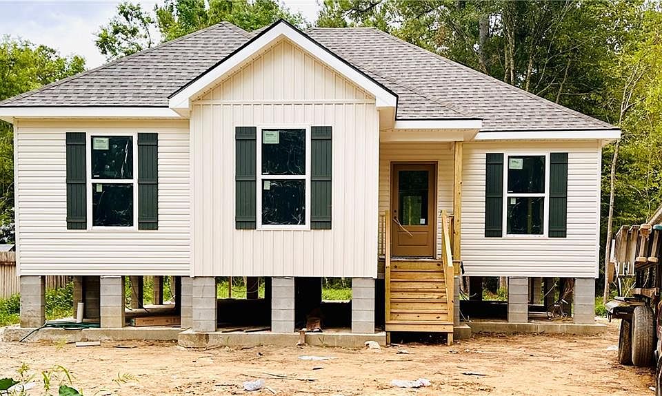 From the moment you step inside, you’ll fall in love with the thoughtful design and quality craftsmanship of this brand-new construction in the heart of Mandeville. Featuring an open-concept layout with stunning vinyl plank flooring throughout, this home is accented with custom wood beams, a spacious kitchen island with quartz countertops, soft-close cabinetry, a stylish tiled backsplash, crown molding, shiplap accents, and so much more. The primary suite offers a luxurious retreat with a soaking tub, separate walk-in shower, dual vanities, and two generous walk-in closets. Natural light pours in through every corner, creating a warm and welcoming atmosphere throughout. This 3-bedroom, 2-bath home also includes a covered patio, perfect for backyard BBQs and crawfish boils and sits on an extra-deep lot measuring 60’ x 228’, offering plenty of room for a pool, workshop, or shed. Located just minutes from the Causeway and I-12, commuting is effortless. Enjoy top-rated Mandeville schools just blocks away, within walking distance. Home is raised, making flood insurance incredibly affordable at just $825/year, and homeowners insurance currently quoted at only $977/year. Best of all, your only utility bill is electricity! Don't miss this incredible opportunity. Call today to schedule your private showing! Estimated completion Mid October, just in time for the holidays.