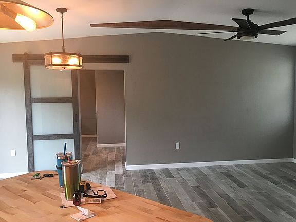 This is a move in ready 3 bedroom 2 bathroom home that has been completely remodeled and updated with an open floor plan. Very large finished laundry/utility room with brand new washer/dryer. New kitchen with butcher block counter tops, tile backsplash and brand new GE appliances. Wood look porcelain tile throughout the entire house. Outdoor paver patio and pergola. Fully fenced back yard. Call for showing. No Brokers at this time