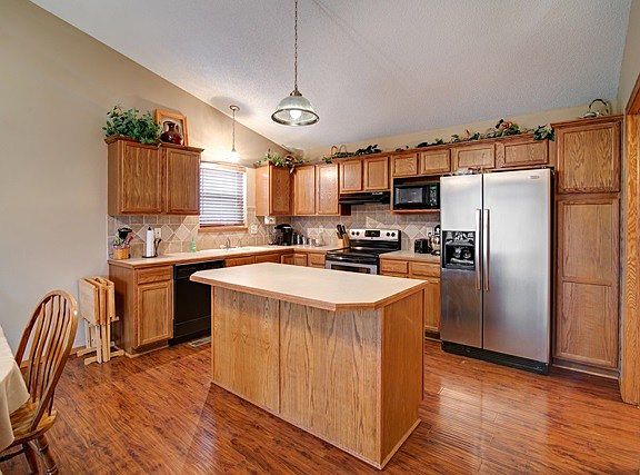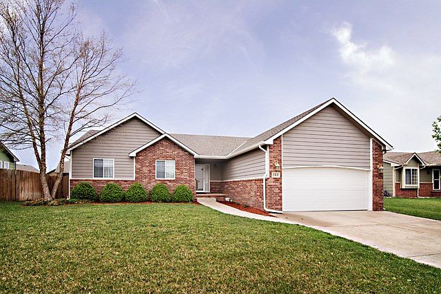 Are you searching for a well cared for home in a great location in Goddard School District? This 3 BR 2 BA 2 Car Ranch may just fit the bill! From the moment you walk into the open concept living space with vaulted ceilings, nice wood laminate flooring and access to the backyard, you will feel right at home. The large Living Room outfitted with a wood burning FP, is open to the Dining area and kitchen. Kitchen features include an island, eating bar, tiled backsplash, lots of cabinet space and a pantry. All appliances stay. Vaulted ceilings continue in the Master suite sporting a walk-in closet and double sinks, tub/shower combo & tiled floors in the Master Bath. Two more nice size BRs, Hall Bath and laundry room round out the main floor. You will want to notice the new carpet in all three bedrooms! The basement is framed in, just waiting for your personal touches to finish the space. The 3rd full Bath is partially finished plus there is potential for 2 additional BRs. You will find privacy in the fenced backyard complete with a covered patio and sprinkler system. Water softener, New water heater, newer roof. Eisenhower Campus Middle & High Schools. Very Close to schools, shopping & churches plus just a short drive to west Wichita. Closings should be scheduled for May 25, 2017 or after. Donât miss out on this home!! Call to schedule your private showing today!!
