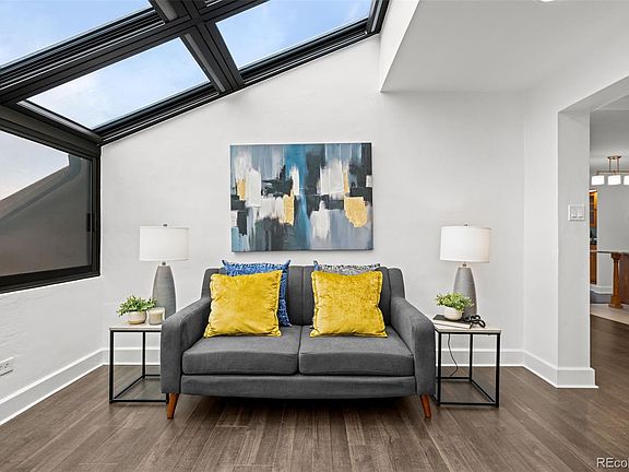 PENTHOUSE LIVING ACROSS THE STREET FROM OUR BELOVED CHEESMAN PARK!! Welcome to your elevated escape in the heart of Denver — a sun-soaked, top-floor penthouse perched above the treetops of Cheesman Park! This rare 2 bedroom, 2 bath condo offers million-dollar views and exclusive access to a rooftop sky deck, perfect for morning coffee, sunset wine or stargazing under the Denver skyline! Step inside to find soaring vaulted ceilings and brand-new skylight windows that flood the open-concept layout with natural light! The cozy living room features a charming wood-burning fireplace, while the flexible sitting area and built-in office nook offer serene work-from-home options with inspiring views! Stylish kitchen equipped with stainless steel appliances, granite countertops and a convenient breakfast bar! The primary suite offers a private retreat with an ensuite bathroom and generous closet space with a rare in unit washer and dryer! The guest bedroom is warm and welcoming, with an adjacent 3/4 bathroom! Central A/C, one underground garage parking space and a double storage unit! Luxury amenities include a year-round indoor pool, hot tub, sauna, and steam room — all within a secure, well-maintained building! Less than 100 steps to Cheesman Park and minutes to the Denver Botanic Gardens, this location offers unbeatable access to Denver’s cultural gems: City Park, Museum of Nature & Science, Zoo, Golf Course and the new 9+CO shopping and dining! Local favorites like Potager, Liks Ice Cream, Secret Garden, Thump Coffee, Steuben’s, Illegal Pete’s and VooDoo Donuts are all nearby! Whether you're seeking peaceful mornings, walkable adventures or vibrant city living, this penthouse delivers it all with endless views!! OPEN HOUSE SATURDAY!!