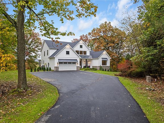 Introducing "High Point" a newly constructed modern farmhouse situated on 5.6 acres, showcasing amazing Ligonier views. The 3500 sq ft custom Schumacher home was designed for entertaining. The heart of the home is the great room, featuring floor to ceiling windows and a porcelain tiled, 16 foot fireplace. Adjacent to the great room is an entertainers kitchen with state of the art appliances. A covered porch with stone fireplace will be delightful for Summer meals while the elegant dining room is ideal for cooler mountain night get togethers. Waking up to the gorgeous views of Pennsylvania's rolling hills sets this 1st floor primary bedroom with en-suite bathroom apart. Warm design elements continue to the second floor. Guests will find their own separate reading area in the spacious loft style family room. 3 bedrooms with 2 bathrooms (1 en-suite) are all comfortably appointed. Enjoy the beauty and peace of the country but still be minutes from the restaurants and shops of the Diamond.