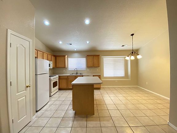 Viewings - please register with Rentlycom. We show our properties with an automated lockbox system. 4BR/Single story in Cabezon Subdivision. Landscaped front and backyards. New Carpet and Fresh Paint Throughout. Open floor plan, living room open to dining and kitchen. Dining w/window seat. Kitchen includes island, refrigerator, gas stove, microwave, dish washer, disposal and closet pantry. Spacious master bedroom with ceiling fan, double vanity, garden tub, separate walk-in shower and walk-in closet. 3 Spare bed rooms, full hall bath w/single vanity. Hallway linen closet, laundry closet, washer and dryer included. Tile and carpet flooring, ceiling fans, plant ledges. Vaulted ceilings in living room and master bedroom. Extended 2 car garage w/remotes. Cabezon Subdivision, walking paths and parks throughout neighborhood. Refrigerated A/C. Directions: From Unser, Left on Cabezon Blvd, Left on Western Hills, Right on Tulum, Left on Soave, Right on Peppoli. Dishwasher, Disposal, Gas Stove, Island, Microwave, Oven, Pantry, Refrigerator, Carpet, Ceramic Tile, Dining Room, Laundry Room, Living Room, Primary Bath, Primary Bedroom, Blinds, Ceiling Fan, Dryer, Garage, Garden Tub, Walk In Closet(s), Washer, Fence, Patio, Porch & Pet Friendly.